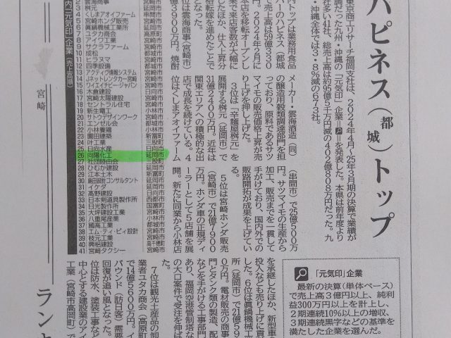 弊社が県内元気印企業として宮崎日日新聞に掲載されました。